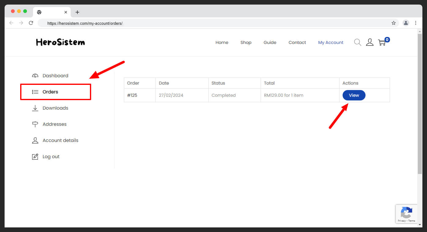 Login akaun anda dan klik pada menu **Orders**.