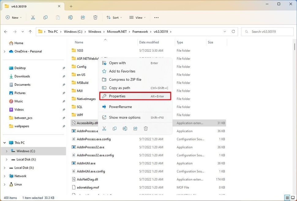 Selepas buka folder, pilih mana-mana file dengan extension ".dll". Right click pada file tersebut dan pilih "properties". Rujuk gambar dibawah.