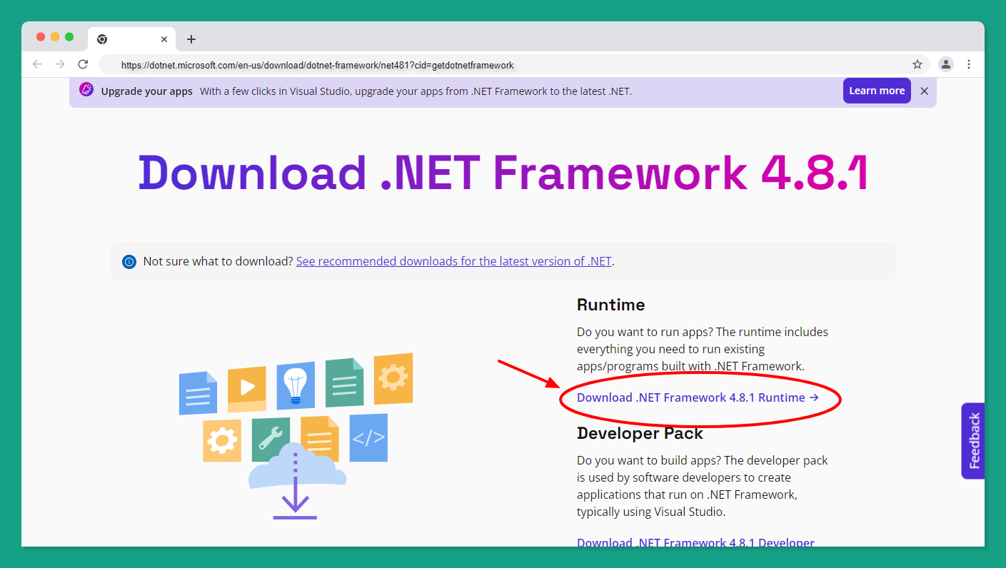 Jika versi .Net Framework anda ialah versi lama, sila download dan install versi terbaru dari link ini: https://dotnet.microsoft.com/en-us/download/dotnet-framework/net481?cid=getdotnetframework