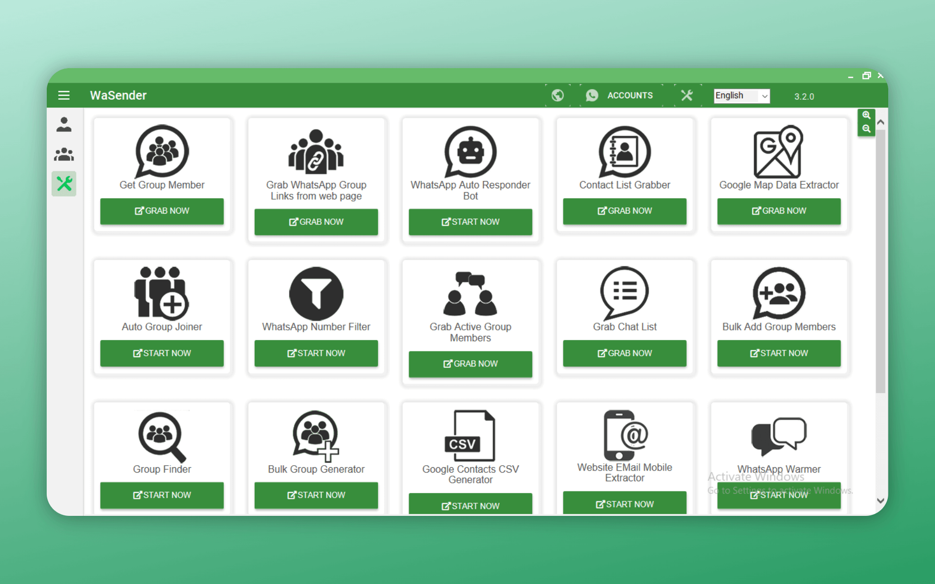 Terdapat beberapa fungsi tambahan pada software **WaSender** yang anda boleh gunakan. Anda boleh lihat screenshot berikut;